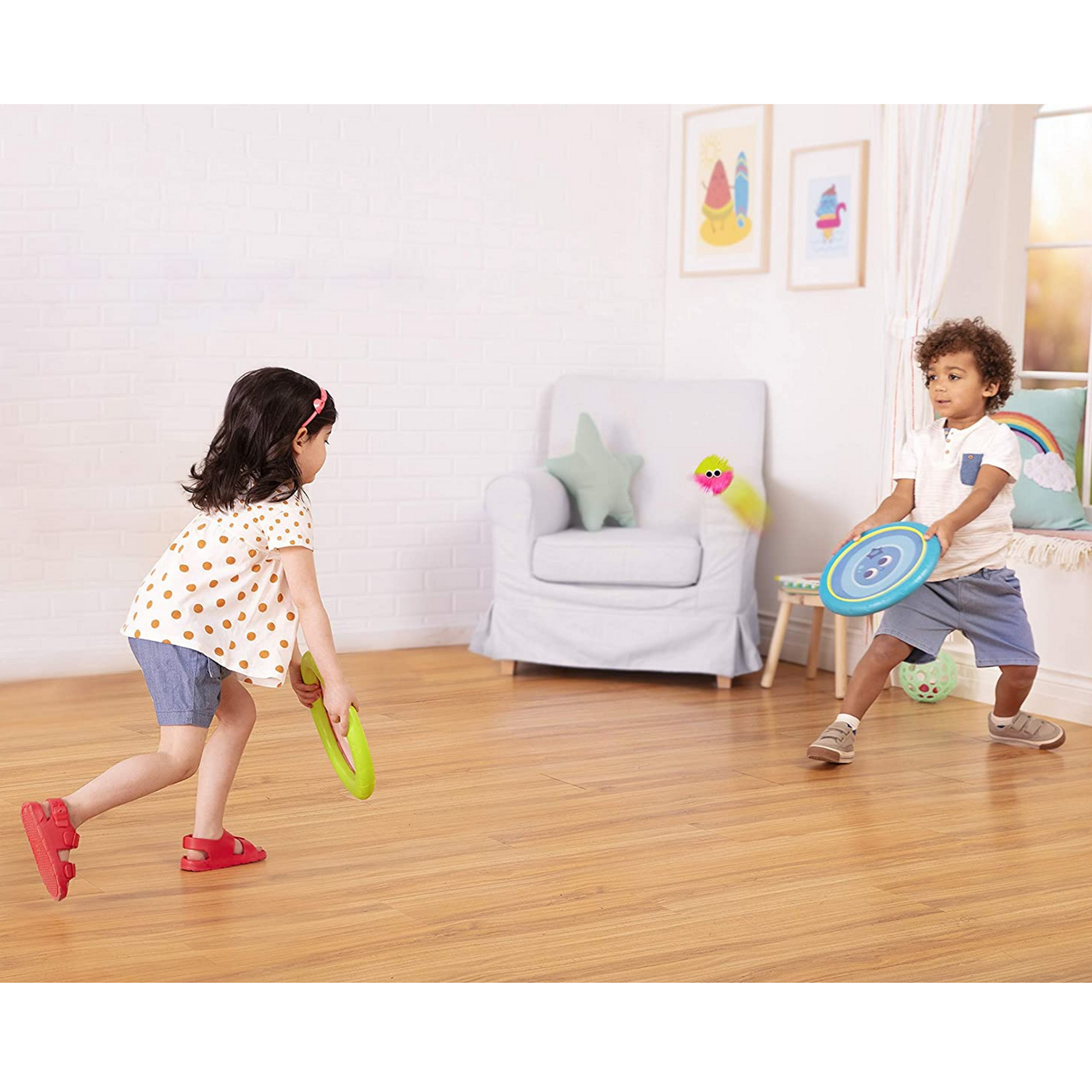- ¡Libere la diversión en el patio trasero o en la playa con los Poppin' Paddles de B. toys! Este juego de pelotas de pádel viene con 2 trampolines de mano y 2 pelotas que los niños pueden usar de varias maneras. Haga estallar la pelota loca de paleta en paleta, tírelas como un disco volador, dé un giro único a clásicos como el tenis y el voleibol, o salpique en la piscina: ¡estas paletas impermeables flotan! Además de mantener activos a los más pequeños, este juego también mejora las habilidades motoras gruesas y la coordinación ojo-mano. Y como en B. tenemos en cuenta el medio ambiente, los padres estarán felices de saber que nuestro empaque es 100% reciclable. Recomendado para niños a partir de 3 años.