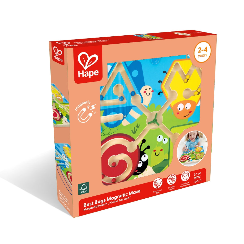 ¡Los insectos tienen hambre! ¡Dales de comer! El lápiz magnético, hace que las bolas avancen a través de este laberinto portátil. ¡Elige por dónde quieres comenzar el recorrido!