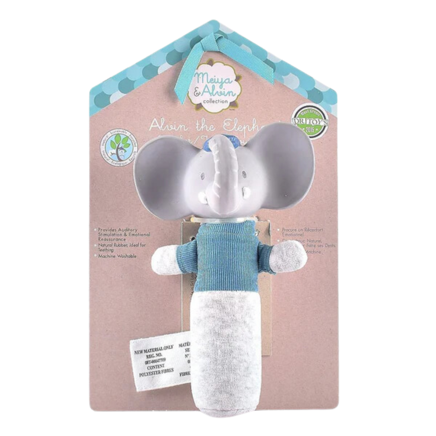 Meiya & Alvin chirriador textil y juguete mordedor caucho natural modelo Alvin el elefante