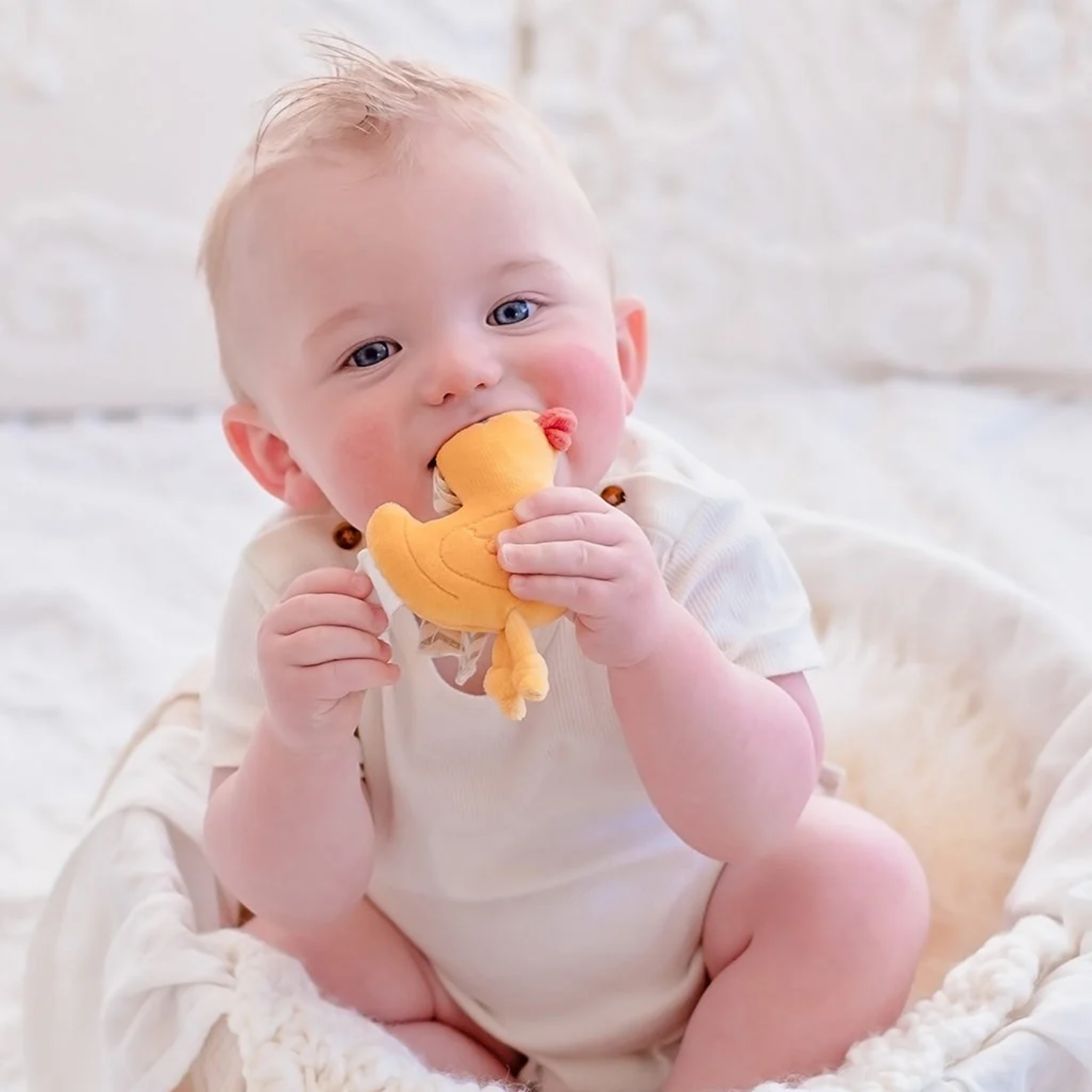 Tara es un adorable patito que mantendrá a tu bebé entretenido tanto si sales a pasear como si haces recados. Este juguete para cochecito viene con una bola con timbre incorporado para desarrollar la exploración sensorial en casa o mientras viajas