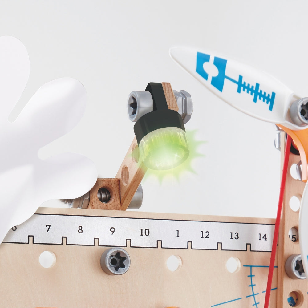 Mesa de herramientas de madera deluxe Junior Inventor con sonido 79 piezas