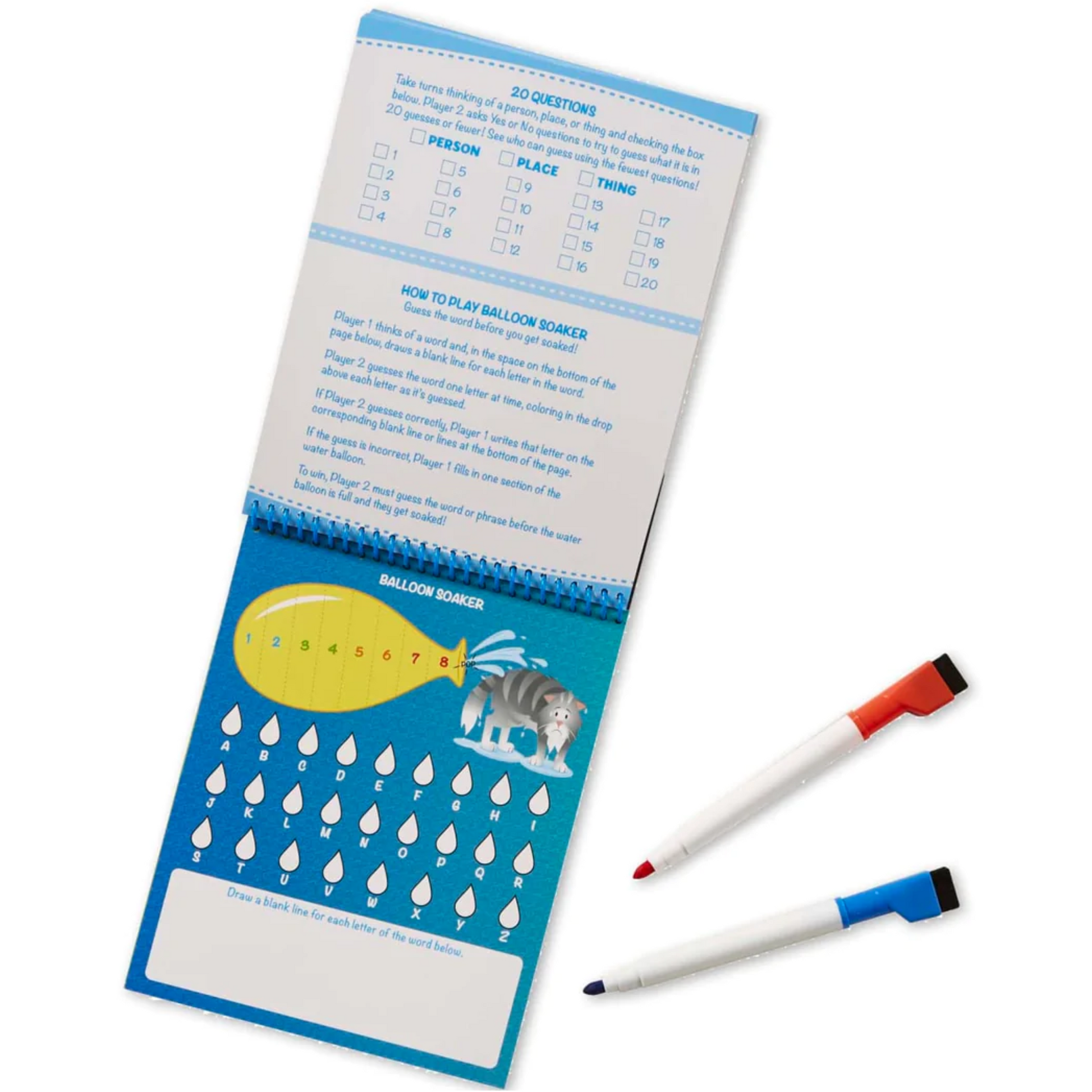 ¡Diviértase mientras viaja con este libro de juegos de rotuladores de borrado en seco para llevar a cualquier parte! Elija entre 17 juegos diferentes de palabras, números e imágenes para uno o dos jugadores, incluidos clásicos como el ahorcado y Yo-espía, así como juegos que seguramente se convertirán en nuevos desafíos favoritos. Los dos marcadores de borrado en seco incluidos con tapas de borrador incorporadas se almacenan convenientemente en la cubierta del libro encuadernado en espiral, lo que lo convierte en una actividad de viaje perfecta para niños de seis años en adelante. ¡Es fácil escribir, borrar y volver a jugar!