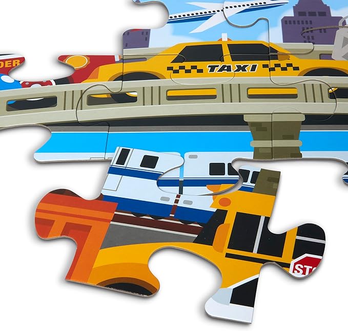 Con tantos vehículos para identificar, a nadie le importaría quedarse atrapado en este atasco. Los colores brillantes y llamativos resaltan todo, desde un tren rápido hasta un avión a reacción.La superficie fácil de limpiar mantiene el rompecabezas como nuevo Promueve la coordinación mano-ojo y las habilidades para resolver problemas.