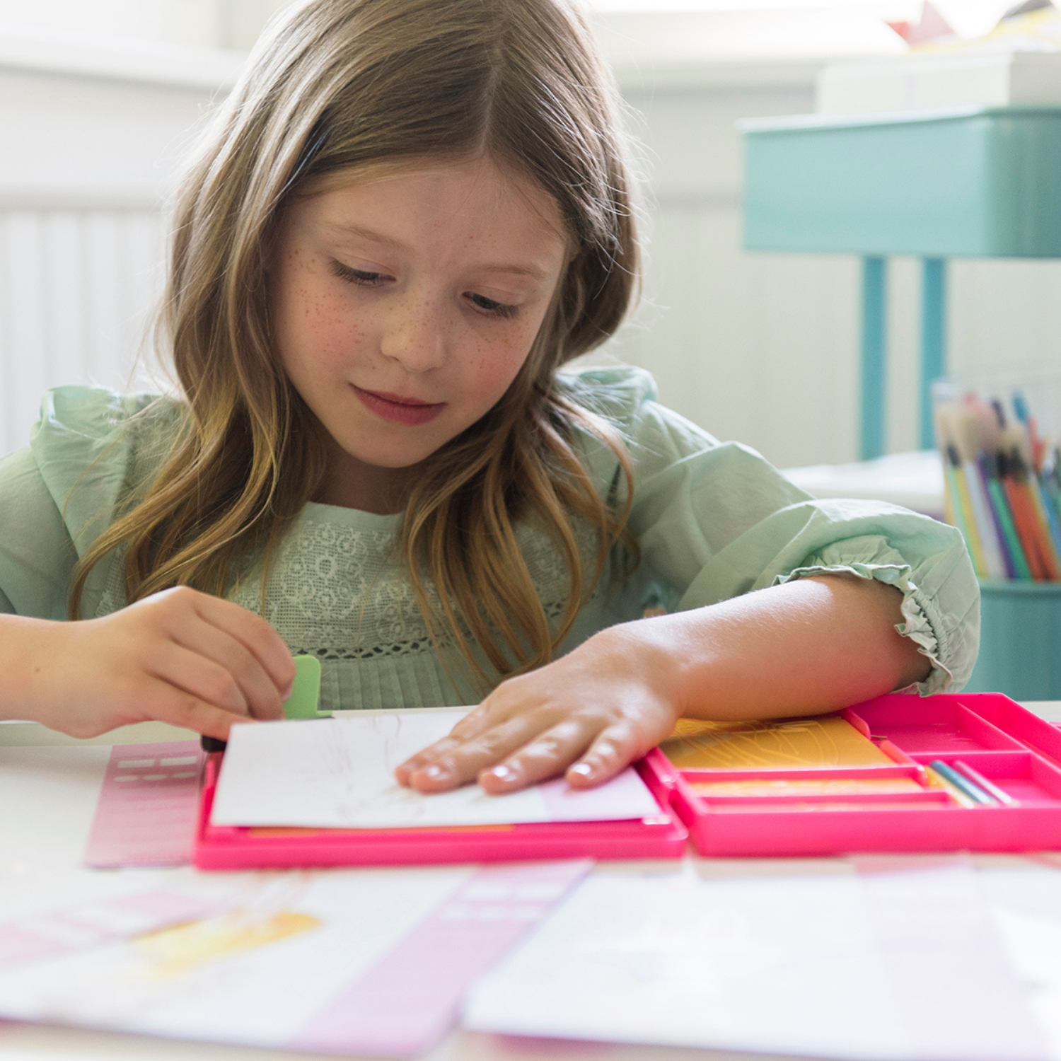 El portafolio de diseño incluye plantillas de moda para ayudar a los niños a dibujar diferentes estilos de ropa, papel de calcar para transferir diseños, papel de diseño para crear bocetos y hojas de papel en blanco para realizar sus creaciones finales. Además, el kit viene con lápices de colores y rotuladores para que los niños den vida a sus diseños.