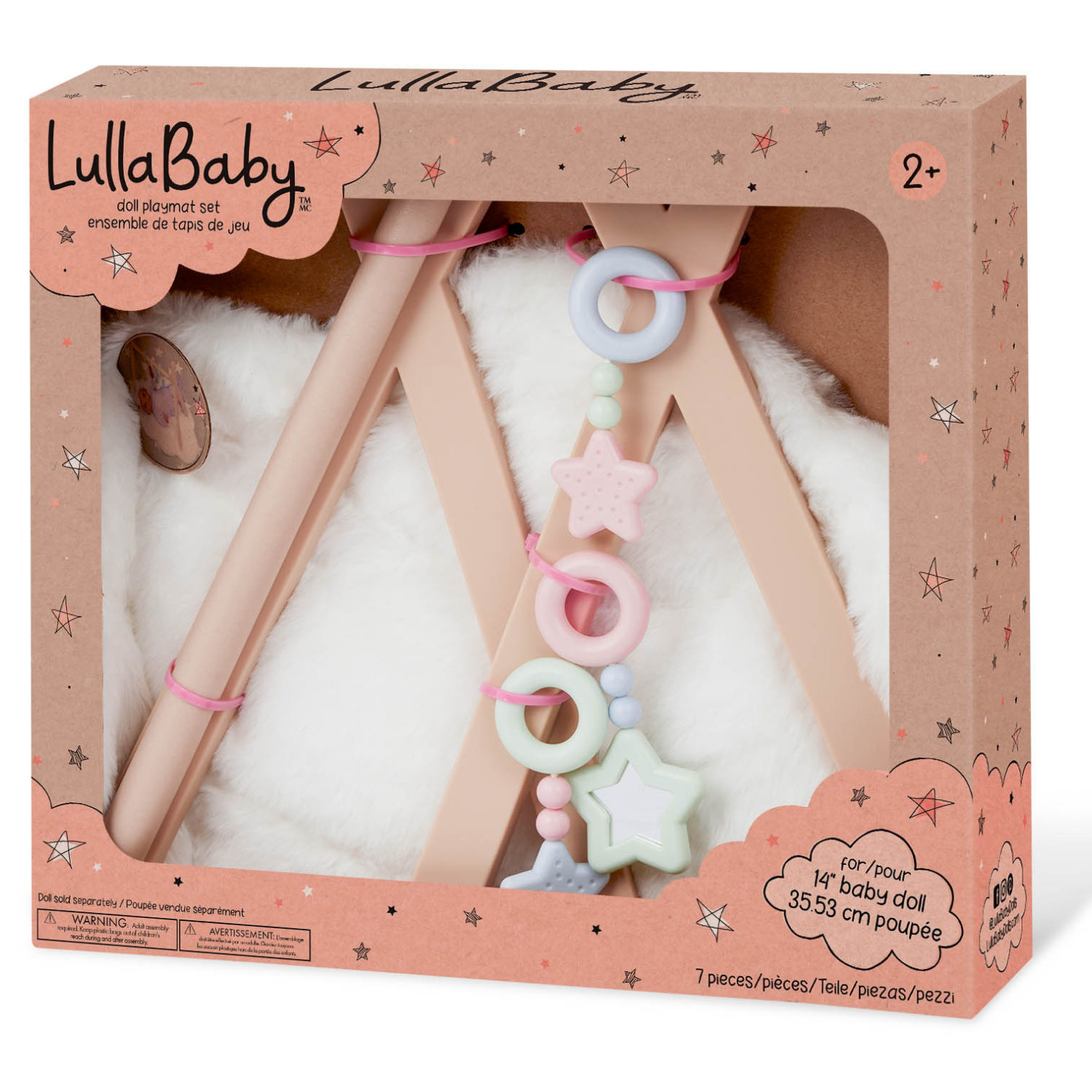 Los más pequeños pueden explorar fácilmente momentos divertidos con su muñeca mientras juegan con el adorable juego de tapete de juego LullaBaby. Ayude a su muñeca a gatear sobre la suave y cómoda alfombra del piso. Luego colócalos debajo del piso del gimnasio para jugar con los 3 juguetes colgantes. Este gimnasio de juegos se compone de 3 sencillos pasos, para que los niños puedan jugar con sus muñecas mientras ejercitan sus habilidades motoras finas y sociales de inmediato. Las muñecas LullaBaby, de tamaño perfecto para que los jóvenes cuidadores puedan abrazarlas, cargarlas y amarlas, alientan a los niños a desarrollar empatía y cualidades de cuidado mientras juegan y crecen con sus muñecas. Este juego de accesorios para muñecas LullaBaby es compatible con la mayoría de muñecas y accesorios para bebés. Se ha sometido a pruebas de seguridad para cumplir con todos los requisitos de BPA y ftalatos. Recomendado para niños pequeños de 2 años en adelante (las muñecas se venden por separado).
