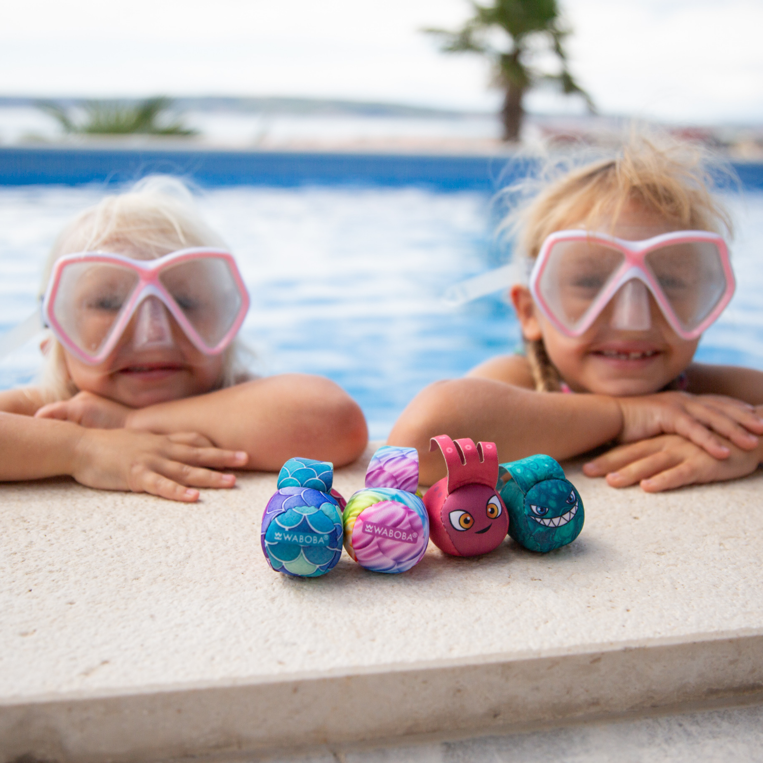 ¡Conviértete en sirena o buceador con las nuevas Colas de Buceo de Waboba! Estas simpáticas colas se mantienen erguidas en el fondo de la piscina, ¡así que a los niños les encantará atraparlas! Elige entre sirenas o criaturas marinas con estos divertidos packs de dos. - Diseñadas para hundirse